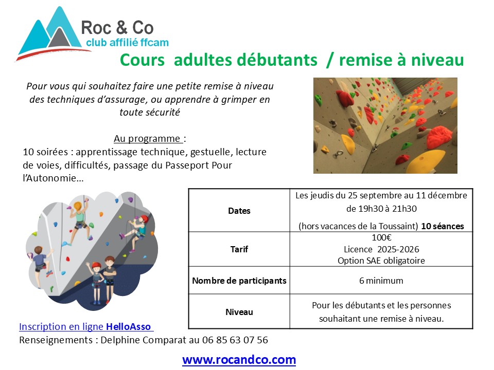 Lien d’inscription sortie ; cours adultes automne 2025 : https://www.helloasso.com/associations/roc-co/adhesions/adultes-automne-2025
